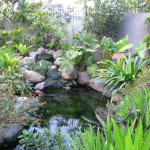 - Trang trí: Dán sỏi đá, trồng cây cảnh, lắp đèn LED, hệ thống nước.