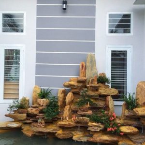 - Lắp đặt máy bơm mini và đường ống dẫn nước để tạo thác nước, suối chảy (nếu muốn).