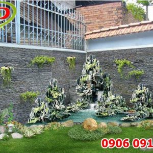 Mẫu 6: Hòn non bộ sân vườn kết hợp thác nước